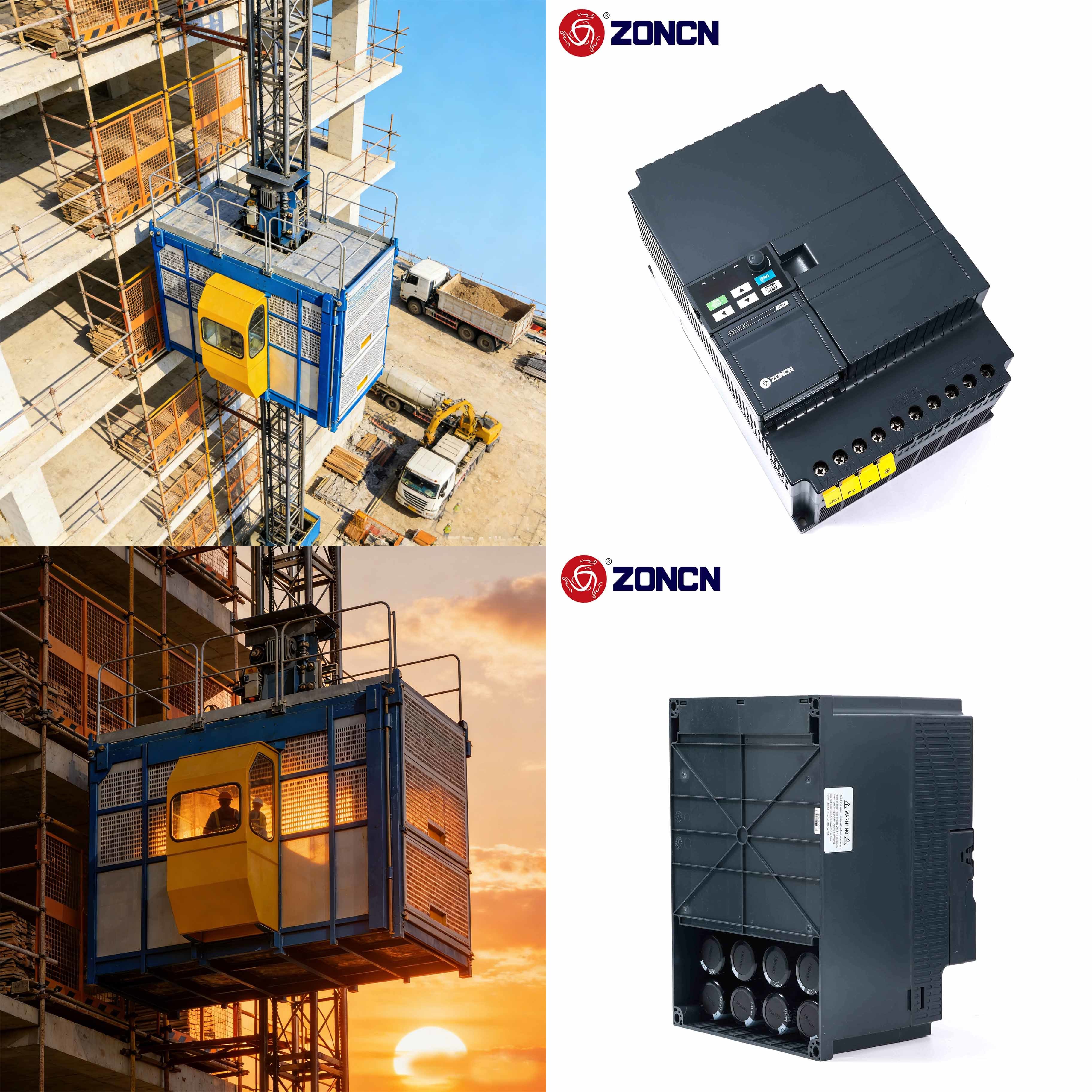Der ZONCN Z2000 Inverter bietet Kernschutz für den sicheren und stabilen Betrieb von Bauaufzügen. Durch die Nutzung der Hochleistungs-Stromvektorregelungstechnologie ermöglicht er ein reibungsloses und nahtloses Starten und Stoppen des Aufzugs. Durch die Unterstützung sowohl der linearen als auch der S-Kurven-Beschleunigungs-/Verzögerungsanpassung unterdrückt der Inverter präzise Stromstöße beim Start und Trägheitsauswirkungen beim Stoppen. Dies erhöht nicht nur den Fahrgastkomfort erheblich, sondern reduziert auch den Verschleiß an mechanischen Komponenten wie Zahnstangen und Bremsscheiben, wodurch die Lebensdauer der Geräte verlängert wird. Gleichzeitig gewährleistet er einen stabilen Warentransport, um Materialschäden zu vermeiden. In Bezug auf die Schutzfunktionen ist der Inverter mit mehreren Schutzmechanismen ausgestattet, darunter Überstrom-, Überspannungs-, Überlast-, Überhitzungs-, Phasenausfall- und Kurzschlussschutz. In Kombination mit einer schnellen Strombegrenzung und Drehmomentbegrenzung überwacht er kontinuierlich den Betriebszustand und vermeidet automatisch Fehlerfahrten, die durch anormale Arbeitsbedingungen verursacht werden. Die Funktion "Überbrückung kurzzeitiger Stromausfälle" erhält den kurzfristigen Gerätebetrieb bei plötzlichen Stromausfällen im Netz aufrecht und bildet eine umfassende Sicherheitsbarriere für Bauaufzüge. Er ist vollständig an die komplexen Arbeitsbedingungen des Hochhausbaus angepasst, wie z. B. häufige Start-Stopp-Vorgänge und große Lastschwankungen.